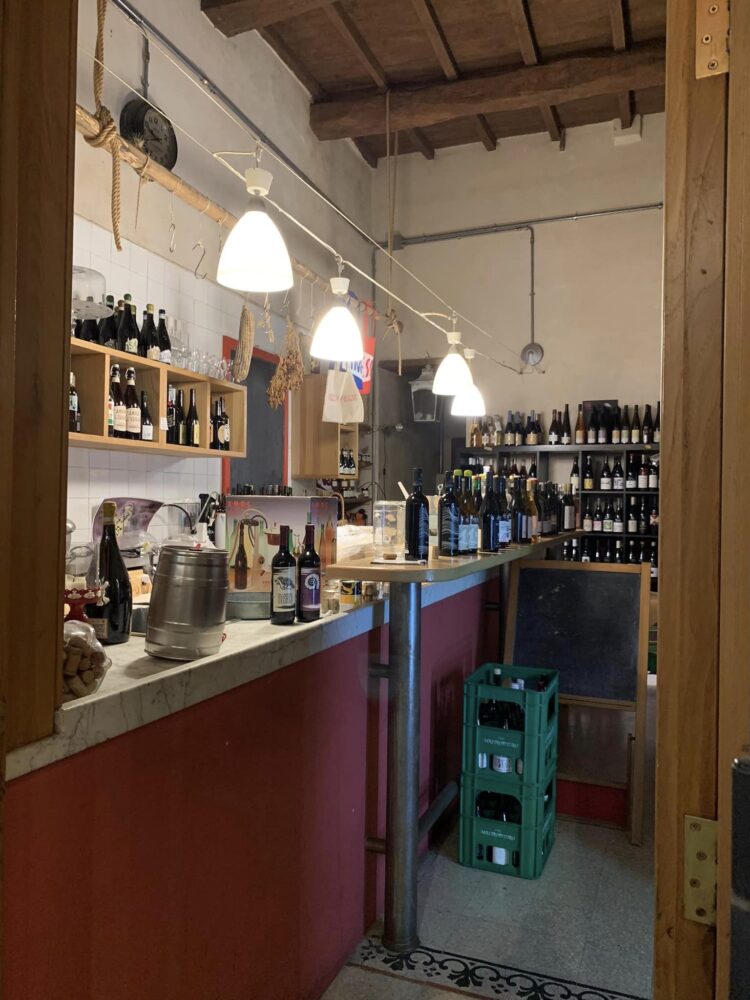 Da bere ci sono solo etichette naturali, esposte nel locale accanto all’osteria. Non c’è carta dei vini, Marco ti accompagna e ti consiglia; i prezzi sono da enoteca, ai quali si aggiungono due euro per il servizio.