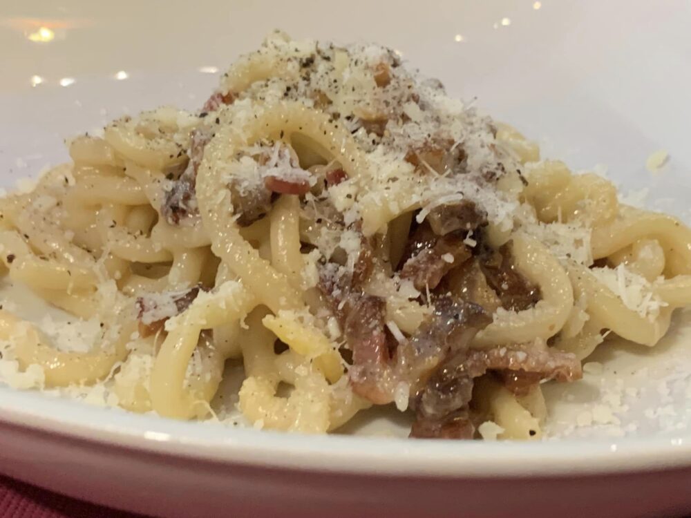 Tra le gradevoli conferme, una gricia eseguita a puntino, gradevolmente profumata di pepe macinato al momento. Forse un po’ magra nelle porzioni ma che non lesina in sapore.