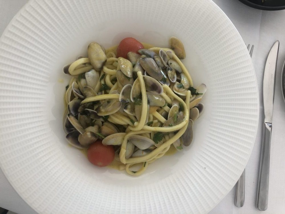 Nei primi piatti il connubio tra terra e mare si esprime sempre nei colori e nelle consistenze di ortaggi freschi, di telline, di pomodoro giallo, di asparagi e gamberi viola. Gli ingredienti seguono le stagioni e sfruttano l’arte pastaia del territorio.