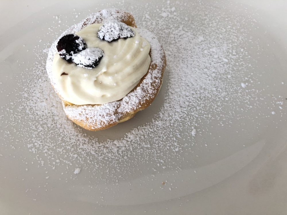 Canneto Beach 2, Zeppola con crema e amarena e mandorle tostate