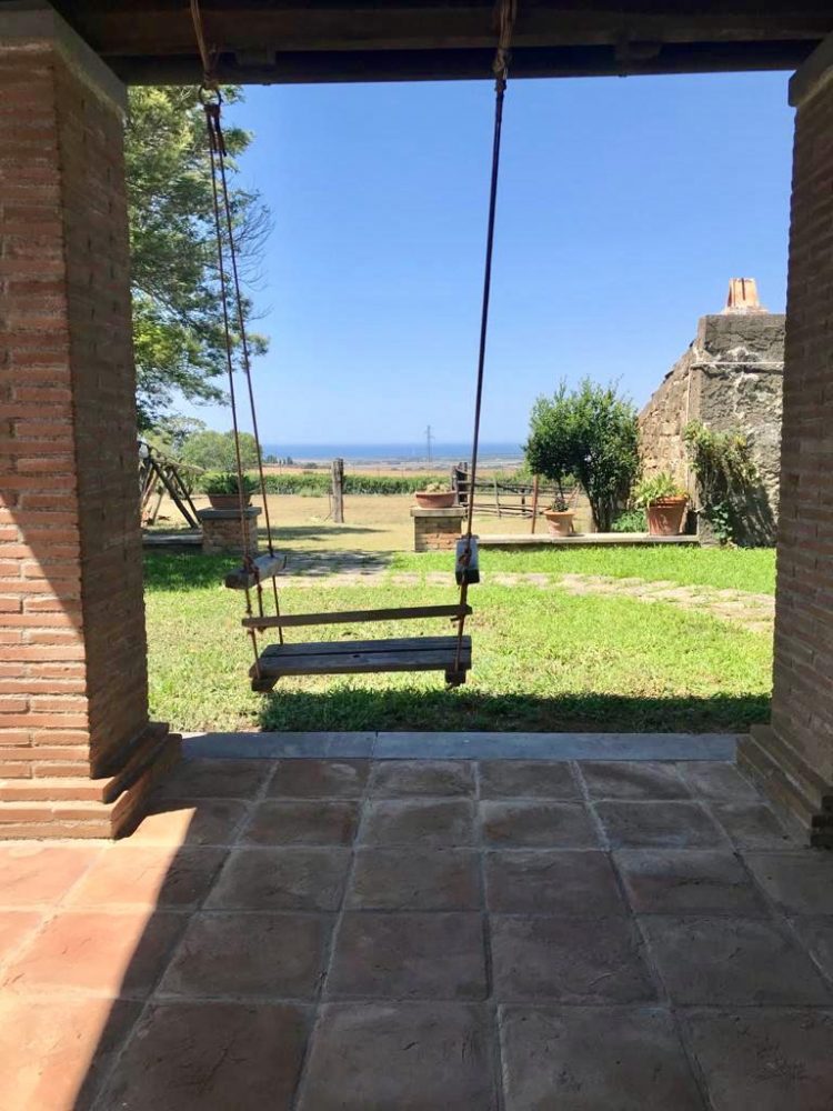Nell’accogliente patio del podere dondola un’altalena che guarda il mar Tirreno e tutt’attorno i due ettari di vigneto e la cantina.