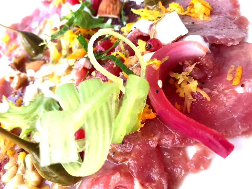 Grande utilizzo del pescato. Dagli antipasti ai secondi. La forza del menù di D’Amore come tanti sull’Isola è quella di aver creato una grande varietà della proposta, proponendo all’interno anche tante scelte classiche quali il Tagliolino al Limone o la semplice Caprese. Ho adorato il Crudo di Tonno. Rievocativo del pesce marinato dei grandi ristoranti partenopei della tradizione domenicale, grazie a tantissime componenti aromatiche e croccanti riesce a far brillare la consistenza della materia prima ed il suo gioco. La triglia impanata in astratto è veramente un’idea lodevole, la cottura leggerissima del pesce, l’impanatura croccantissima e leggermente umida, solo appoggiata, la dolcezza della ricotta. C’è tanta Capri quì.