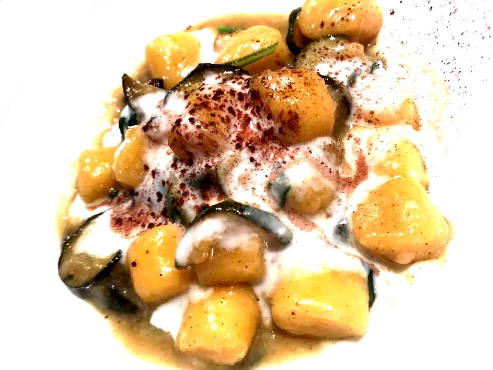 D’Amore, Gnocchi di Semola alla Nerano, Provolone del Monaco e Cacao