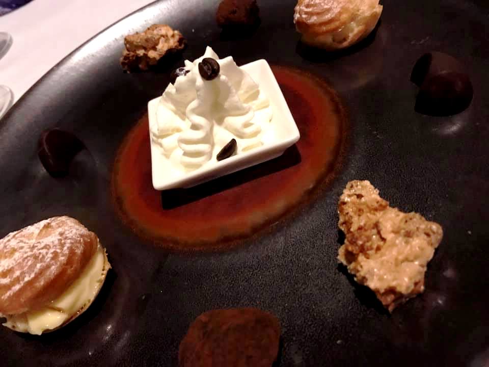 Primi di caratura assoluta. Inebriante il risotto al thé verde, aglio nero, Gari e crudo di Gambero Rosso. Spaghetto Setaro, Canocchia Arrostita, crema di Zucchetta Verde, olio alla bottarga e timo limone. Tortelli con fave secche, guanciale, fonduta di caciocavallo, cacao & tartufo bianchetto. L’autunno in anticipo che ben si sarebbe completato con un tocco di Caviale quì e là. Cucina marcatamente maschile, ma raffinata.