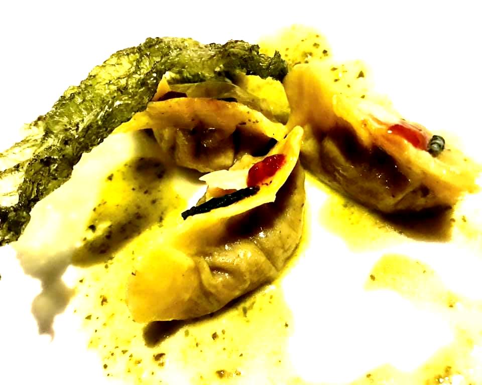 I primi sono un vero e proprio trionfo dal mare e del mare. Un uso onnipresente ed indovinato della salicornia. Tanto nello spaghetto cotto nell’acqua di limone con il caviale quanto nei ravioli alla pescatora. Chiusura da Dim Sum, veramente inaspettata, tanto nel colore quanto nella forma. Salinità, iodio, forza. Le componenti sono veramente azzeccate.