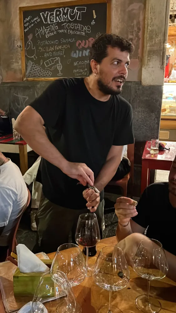 “La mia passione per il vino l’ho scoperta quasi per caso. Ero in un momento molto delicato e difficile della mia vita, i miei studi mi avevano portato ad un vicolo cieco e il mestiere che mi ritrovavo tra le mani dopo anni di esperienza pure. Mi sentivo perso. Quando ho iniziato a lavorare al Vermut ho fatto la scommessa di provare a fare questo mestiere senza risparmiare energie e tempo” ci racconta, facendo riferimento ai suoi studi universitari presso la facoltà di Scienze Politiche di Catania. “Il vino è strettamente alla storia, che sia umana o geografica, così ho capito che potevo usare i miei studi in questo settore, prima sui vermouth e poi sul vino. Il vino riusciva a dare senso a tutti i miei sforzi passati”.