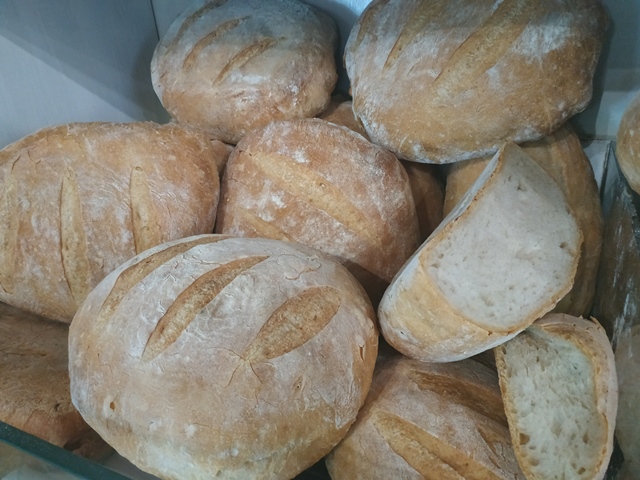 Marcello si occupa quotidianamente del pane e della pizza con lievito madre, cotti nel forno a gas: bianco, di grano duro, integrale, di farro, di segale, multicereali.