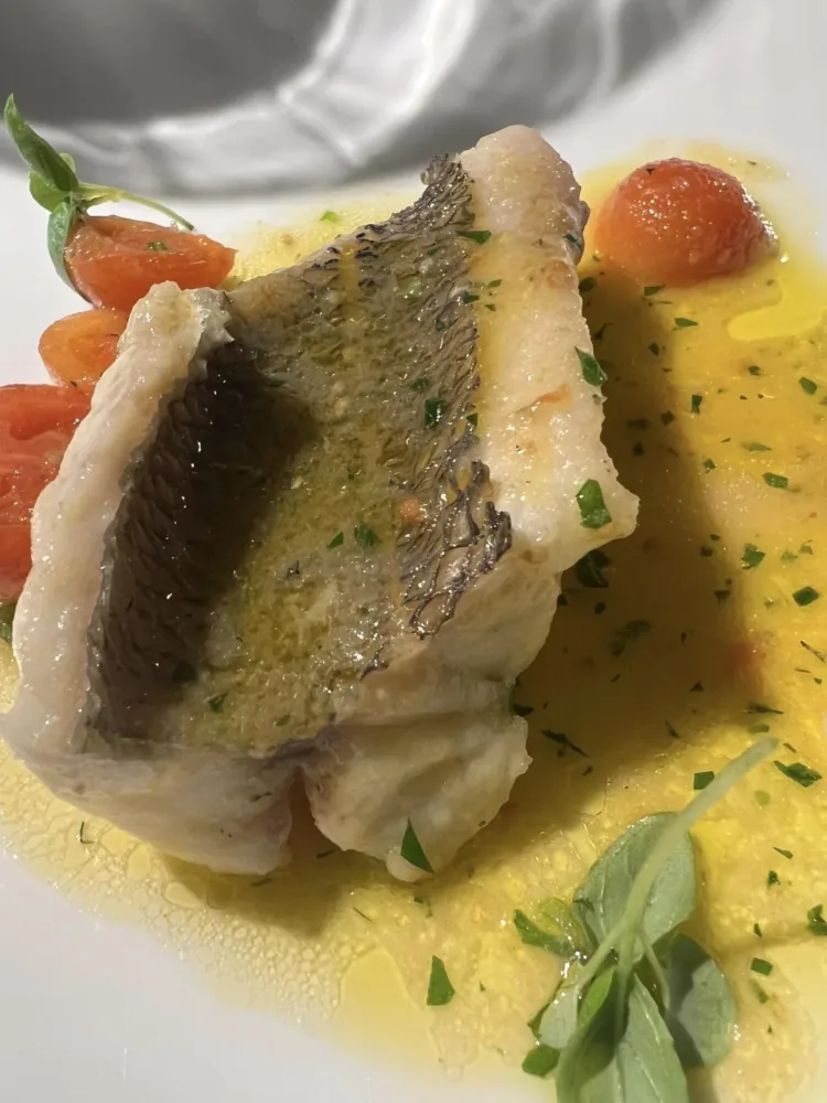 Buono sicuramente ma senza acuti il calamaro imbottito che sconta un’eccessiva pesantezza del piatto, complice anche la maionese, ma soprattutto il confronto col risotto precedente di rara perfezione.