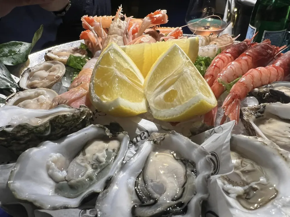 Pesce vivo, ma nel senso letterale del termine, frutti di mare da tutto il mondo (grande selezione di ostriche) e ricca carta dei vini, soprattutto bollicine, sia italiane che francesi. Come si evince, un locale di fascia medio alta, per offerta e servizio, con un costo medio di circa 40-60 euro, vini esclusi. Non sono pochi ma rapportati all’offerta, veramente difficile da trovare di questa varietà e freschezza, rendono questo locale meritevole di essere visitato dagli amanti della cucina di mare, del crudo in primis.