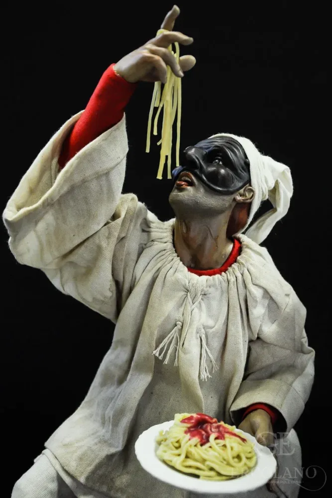 Ciononostante la centralità acquisita dal settore pastaio a Napoli e nell’Italia Meridionale, non solo nell’economia ma anche nell’organizzazione sociale, favorì la costruzione dello stereotipo dei napoletani come Mangiamaccheroni interpretato attraverso un’oleografia consolidata e non scalfibile nel tempo. La maschera di Pulcinella sempre rappresentata mentre mangia spaghetti, oppure il personaggio di Totò in Miseria e Nobiltà che prende i maccheroni con le mani e li introduce nelle tasche sono rappresentazioni iconografiche di una realtà costruita nel corso dei secoli e che neanche la ridefinizione del tessuto produttivo nazionale ha potuto scalfire.