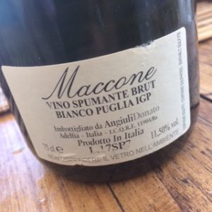 … sicuramente il Maccone rosso è un taglio interessante di vini da virigni autoctoni e del territorio, tra l’altro già da me premiato sulla guida che curo, ma questo spumante è una bevuta sincera e appagante. Lontana da ogni logica e, poi il Maruggio come vitigno va valorizzato, anche perché si presta alla spumantizzazione…
