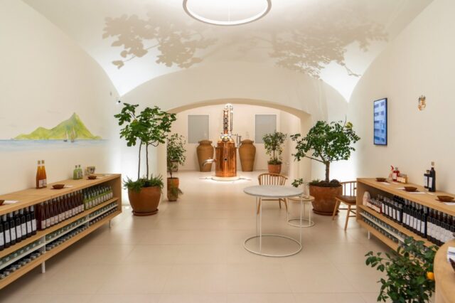Alessandro ed Anna dal 2016 rincorrono un sogno: portare nell’ isola verde l’arte della distillazione artigianale. Nel 2021 inaugurano Distillerie Aragonesi nel centro storico di Ischia Ponte che, con i suoi 35 mq destinati alla produzione, si candida ad essere la distilleria più piccola del mondo. Dal locale destinato alla vendita si possono seguire le fasi della produzioni ed accedere ad una vecchia cisterna sotterranea adibita a locale d’invecchiamento. Il tutto ai piedi del Castello Aragonese in un edificio appartenuto ai monaci agostiniani. La scelta del centro storico non è casuale, come ci racconta Alessandro. E’da lì che parte la consapevolezza della propria identità in quanto, da sempre, i borghi si sono sviluppati intorno alle botteghe artigiane e dunque è necessario ridare ad essi la giusta centralità prima per gli autoctoni e poi per il turismo che diventa, in questo modo, esso stesso strumento per preservare il territorio. Alle pareti i dipinti di Marco Cecchi, artista ischitano che ha curato anche le etichette dei distillati. Su un lato del locale si può ammirare la riproduzione del Castello Aragonese, dall’altro la mappa del Mediterraneo, una sorta di monito a guardare sempre oltre i propri confini sia territoriali che mentali, perché la vera ricchezza è la diversità di tradizioni e di saperi.
