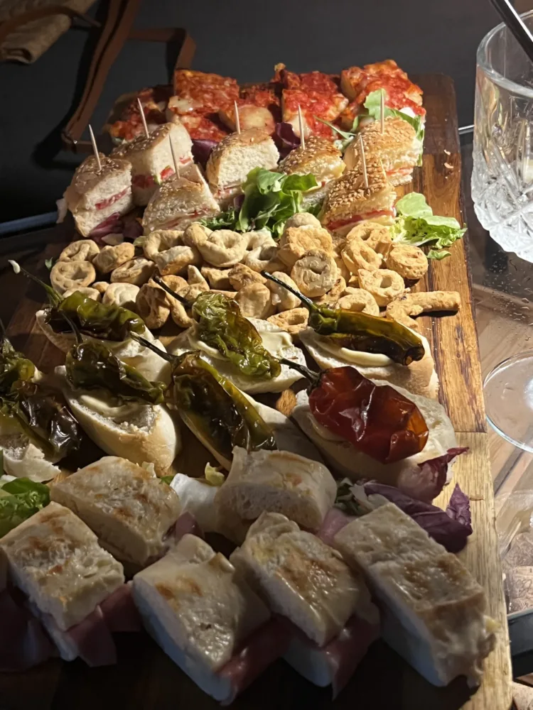 Se si fosse fermato però alle sole bottiglie avrebbe rinunciato a una fetta di mercato importante ed è per questo che si è aperto alla formula aperi-cena, in modo da accontentare tutti in un sol colpo. E che colpo! In cucina la mamma, che prepara torte rustiche, stuzzichini, zeppole, pizze, tartine, pani ripieni di ogni tipo. E se siete fortunati trovate anche le alici ripiene.