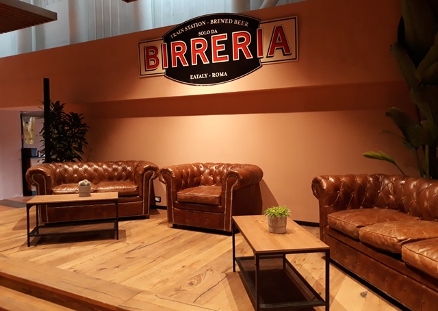 Arredi american style, ambiente curato e qualche elemento tipico dei pub: la nuova Birreria si trova al primo piano e segue la formula di un Birrificio e Cucina, con la produzione di birra artigianale che è raddoppiata, arrivando a circa 50.000 litri all’anno a metri zero. Nella nuova Birreria si trovano inoltre 400 birre artigianali in bottiglia, dall’Italia e dal mondo, proposte fresche da consumare in loco o da portare via. Sono cinque le birre alla spina prodotte nel Birrificio: Golden Eataly, Golden Ale – 4.8°, Genève, Indian Pale Ale – 6.7°, Aeki, Dubbel – 6°, 80 Schilling, Scotch Ale – 8° e MCDXCII, Blanche – 4°.