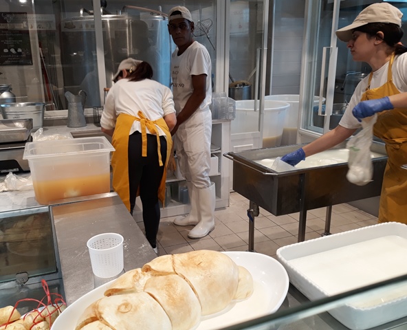 Completamente rinnovato anche il Caseificio dell’imprenditore casertano Roberto Battaglia: un luogo in cui assistere direttamente alla produzione di mozzarelle e burrate. Ogni giorno, al primo piano, i mastri casari lavorano oltre 550 litri di latte di bufala fresco. Il laboratorio è rigorosamente a vista per permettere alla clientela di osservare da vicino tutti i processi della lavorazione. In vendita ci sono trecce, ricotte, scamorze fresche o affumicate e le mozzarelle.