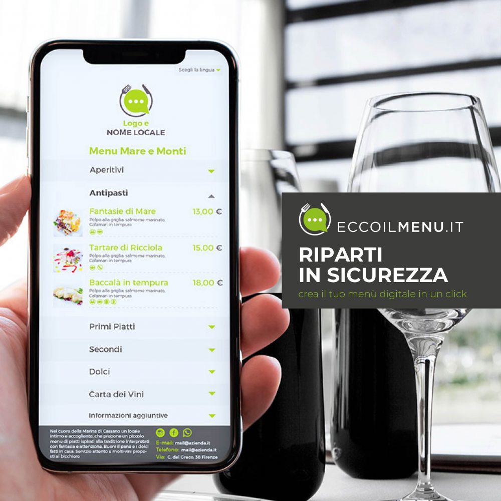 Una soluzione al passo con i tempi. Una iniziativa destinata alle attività di bar, ristoranti, pizzerie, trattorie, pub, food truck e pasticcerie, in linea con la normativa “emergenza coronavirus”, con la prospettiva di garantire la massima sicurezza al personale del locale e al cliente. Si chiama «Ecco il Menu.it», il sito web realizzato da «I Made IT» per andare incontro alle nuove esigenze del settore dell’enogastronomia. Il portale elaborato dalla Start Up della Penisola Sorrentina, consente al gestore di una qualsiasi attività di caricare in maniera facile e veloce la propria offerta sulla piattaforma assieme a una descrizione delle portate, ad immagini di ciascun piatto, alla lista degli allergeni e alla traduzione automatica in lingue straniere. Alla fine del processo il menù verrà trasformato in un QR Code, che potrà essere subito stampato e posizionato su ogni tavolo in modo da consentire alla clientela la lettura tramite tablet o cellulare, oppure in un pratico link, navigabile direttamente da device.