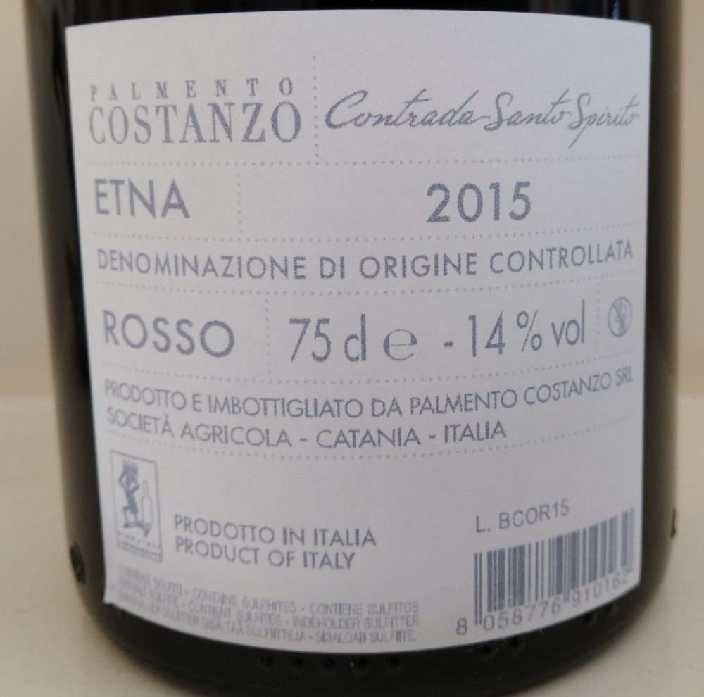 Controetichetta Etna Rosso Doc 2015 Contrada Santo Spirito Palmento Costanzo