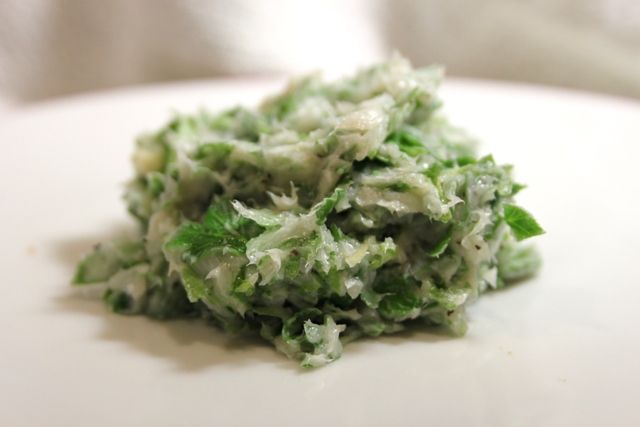 Triturate l’aglio e il prezzemolo.