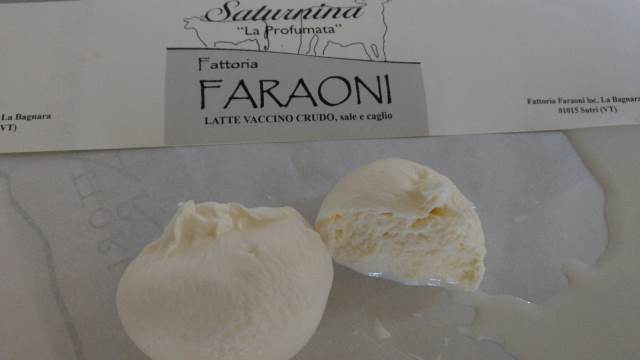 Un altro fior di latte laziale d’eccellenza è quello della Fattoria Faraoni di Sutri (VT) di Andrea Cippitelli e Silvia Faraoni, che producono formaggi freschi, semi-stagionati e stagionati, ottenuti unicamente dal latte delle loro mucche attraverso una lavorazione artigianale sia con caglio vegetale che animale. Dieci anni fa questa giovane coppia ha rilevato la piccola fattoria del padre di Silvia, che aveva un allevamento di 12 vacche di razza Frisona italiana. Un passo importante, avvenuto con la definizione di un progetto virtuoso, in parte realizzato, per la produzione di carne, latte e formaggi di qualità. Sono stati acquistati nuovi animali adatti al pascolo e sono stati risistemati tutti i terreni: Andrea e Silvia si occupano delle loro Pezzate rosse, a cui si aggiungono le Maremmane per la carne, per un totale di 120 capi, tra vitelli e adulti. I bovini allevati nella Fattoria Faraoni vivono liberi: si nutrono solo di erba per 8 mesi e, negli altri 4, non si cibano di integrazioni di mangimi, ma solo di fieno. Nel periodo estivo, il fior di latte è quindi più giallo, grasso e ricco di beta carotene: si avvicina molto a una mozzarella di bufala. La fattoria produce altri formaggi freschi, come stracchino, primo sale, yogurt e burro, i semi stagionati e i formaggi a lunga stagionatura, tutto prodotto con latte crudo, ad eccezione dei formaggi più stagionati, in cui viene utilizzato il latte termizzato per ottenere un prodotto più stabile nel tempo.