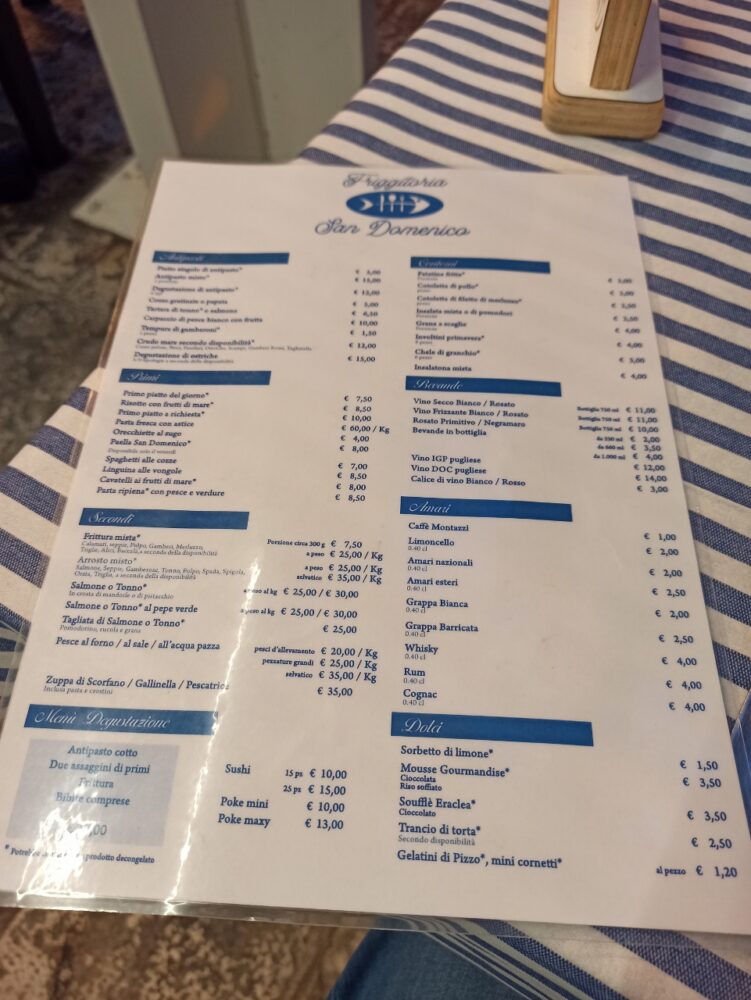 Quando siamo passati per Putignano abbiamo sempre provato a fermarci in questo ristorante di pesce fresco, senza mai riuscirci per il grande afflusso di gente che ha. Ma stavolta ci siamo mossi in anticipo e abbiamo riservato 2 dei circa 100 posti a sedere che ha in una delle piazze principali della città, di fronte ad uno dei varchi di accesso al centro storico, l’Arco Porta di Barsento.