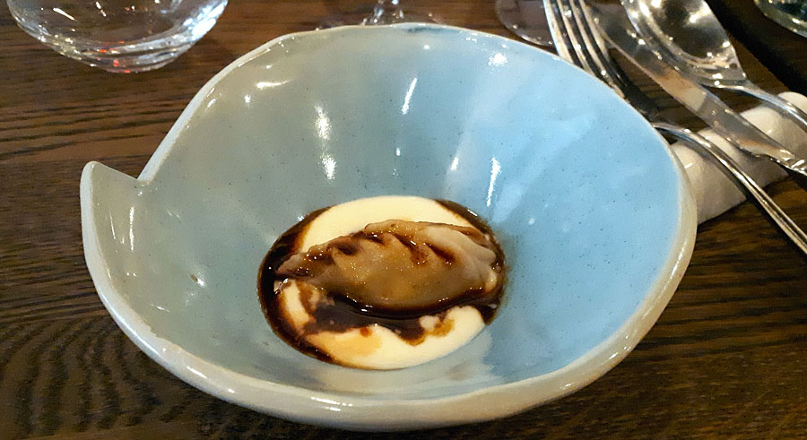 Un altro piatto che al 53 credo sia un must: “Dumpling coda alla vaccinara su crema di pecorino, fondo bruno e angostura”. Il dumpling, anche se tradotto in italiano è “gnocco”, di fatto è un raviolo cinese, altra contaminazione, ripieno con la romanissima coda alla vaccinara e aromatizzato con l’angostura, un bitter a base di erbe aromatiche amare, molto utilizzato in cucina. La cosa che ho maggiormente apprezzato, non solo in questo piatto, è la capacità che ha Cecilia Moro di trovare un equilibrio perfetto tra ingredienti non così semplici da unire, ottenendo preparazioni allo stesso tempo ricche, originali ma mai pesanti.
