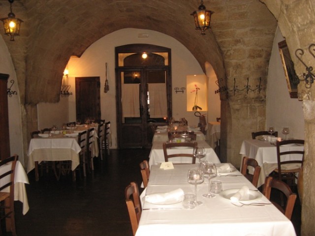 Se siete di passaggio nel territorio della Bassa Murgia, vale la tappa all’Osteria del Borgo Antico a Gioia del Colle. Il ristorante si trova proprio nel centro storico del paese in una vecchia stalla di un vecchio palazzo, resa particolarmente accogliente dall’attento restauro effettuato, lasciando in bella vista le pareti di tufo nelle varie tonalità di giallo ed il soffitto a volta.