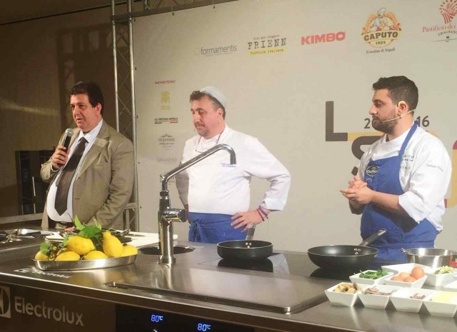 Tra tutti gli chef presenti alla nona edizione de Le Strade della Mozzarella a Paestum sono ben evidenti elementi di contaminazione, il tema scelto quest’anno per la manifestazione, vuoi per la formazione, vuoi per il luogo dove lavorano, vuoi anche e soprattutto per le conoscenze acquisite nel tempo per arricchire il proprio bagaglio culturale. Gli interventi nella Sala Rossa si sono aperti con Saverio Sbaragli, chef de Il Lago di Ginevra al Four Seasons. Sono tre i finger food presentati da Saverio, la pasta in aperitivo. E’ stata poi la volta del giovanissimo chef calabrese Luca Abbruzzino, chef del ristorante Antonio Abbruzzino alta cucina locale, che nei suoi tre piatti ha dimostrato come si possa contaminare la mozzarella di bufala campana con i prodotti tipici della Calabria, tra cui la ‘nduja, la liquirizia, aggiungendo anche i mandarini cinesi. Per Luigi Taglienti, contaminazione significa anche recupero del passato e, dopo aver presentato il mezzanello con la torzella, ha proposto una cucina neokitsch con il recupero delle pennette panna, salmone e vodka. Emanuele Scarello, del ristorante Agli amici di Udine, ha interpretato la mozzarella di bufala campana secondo il punto di vista del nord-est. Vito Mollica, de Il Palagio di Firenze, ha raccontato la sua cucina contaminata non solo dall’estero, vedi la scelta del brunch composto da novanta pietanze a Il Palagio, specialmente per soddisfare le richieste dei propri clienti. Ma contaminazione è anche recupero della memoria e lo ha dimostrato con il suo timballo scomposto di maccheroni. Anche la pizza può essere annoverata tra i cibi più contaminati al mondo e ce lo ha spiegato Salvatore Salvo della pizzeria Francesco e Salvatore Salvo di San Giorgio a Cremano. La giornata si è conclusa con Pasquale e Gaetano Torrente, de Il Convento di Cetara e Burro e alici di Erbusco, che hanno proposto due pietanze provenienti da ricette fatte con ingredienti diversi, come la carbonara di zucchine e prosciutto di Praga e gli ‘ndunderi con burro e lische di alici.