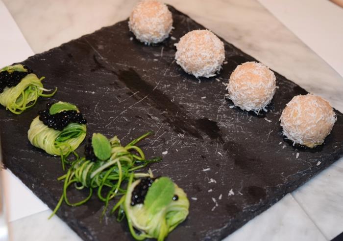 Il locale è il primo punto Pommery della Campania e da una passione comune per gli champagne francesi, è stato creato un evento che ha visto come protagonisti due amici: lo chef stellato di Kresios Giuseppe Iannotti e Salvatore Marco Grasso, titolare di Olio & Pomodoro. L’antipasto è stato degustato esclusivamente con le mani, partendo dai finger food di Iannotti: tagliolini di zucchine alla scapece con caviale di tartufo e Raffaello di foie gras.