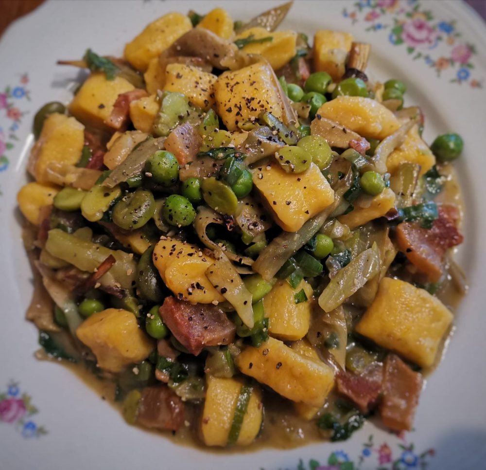 In questi giorni gli gnocchi con la vignarola sono protagonisti del “menu della domenica” di Eufrosino Osteria, disponibile attualmente con il servizio d’asporto o di consegna a domicilio (tel. 348/5883932 o [email protected])