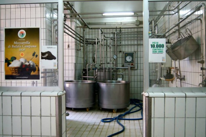 In questo luogo carico di ricordi, i due fratelli dal 1977 producono in modo artigianale avvalendosi dell’ausilio di esperti che associano al lavoro tradizionale quello di ricerca, mozzarelle, aversane da circa 500 grammi, trecce e bocconcini dop, con latte proveniente da allevamenti bufalini selezionati e rigorosamente controllati dall’area casertana, nelle vecchie scuderie del palazzo trasformate in caseificio: un meraviglioso “salotto caseario” tramandato da generazioni.