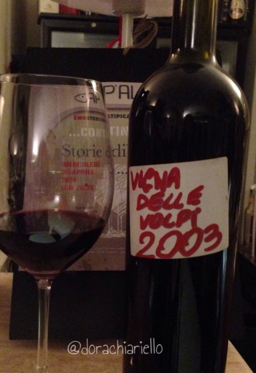 Promette più che bene anche la 2012, che non vede l’utilizzo del legno, è complessa e di piena energia. Si chiude a sorpresa ed in grande bellezza con il Vigna delle Volpi 2003 che ha visto un utilizzo del legno ben misurato in modo da dare al vino quella energia necessaria per evolvere così magnificamente nel tempo. E’ un vino dell’emozione, estremamente profondo, complesso ed elegante.