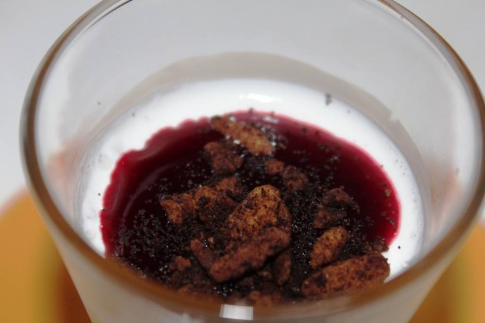 Oasis Antichi Sapori, cremoso di yogurt di bufala al bergamotto con salsa ai frutti di bosco e caffè