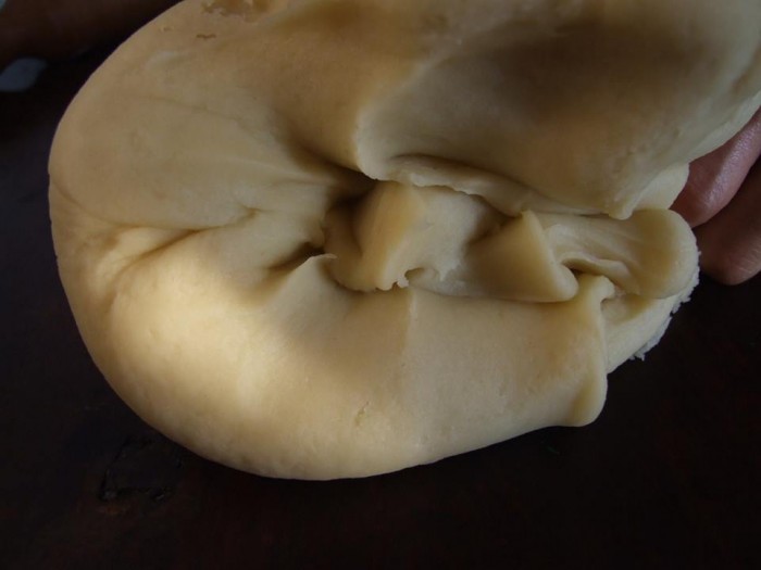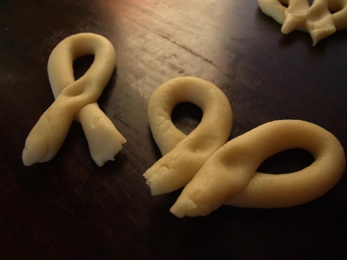 A questo punto adagiate il composto così ottenuto su di un piano di marmo o di legno già oliato e continuate pure a lavorarlo, magari aiutandovi con un mattarello. Lasciate raffreddare l’impasto mentre lo lavorate ancora, quindi ritagliate dei piccoli pezzi a cui darete la tipica forma Alfa e Omega.