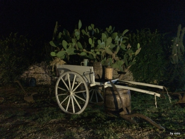 Nel giardino di questa bella masseria, che è stata set di un film di Sergio Rubini nel 2006, La Terra, che narra la storia di un intenso legame sangue con tanto di segreti familiari, funziona di sera, e solo in estate, una buona cucina tipica.