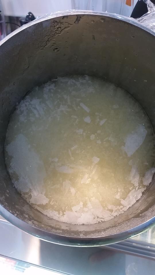 - Quando il liquido si sarà congelato, toglierlo dal freezer e lasciarlo sciogliere per qualche minuto. (Per velocizzare l’operazione si può passare il recipiente sotto l’acqua corrente).