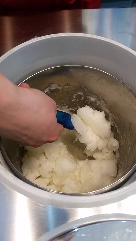 - Iniziare a grattare la granita, muovendola con un cucchiaio di acciaio, in modo tale da ottenere un composto cremoso.