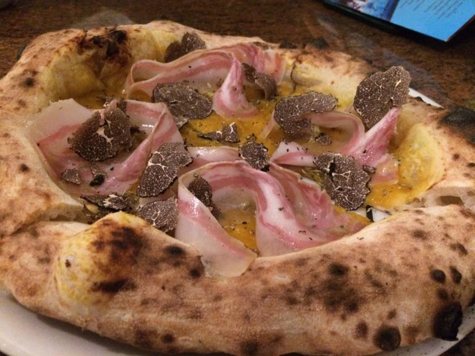 Ma la parte più interessante è senza dubbio quella delle pizze fuori carta o stagionali che dipendono da quello che Angelo e la sua famiglia recuperano dalla loro azienda agricola o nei boschi vicini, a seconda delle stagioni o da piccoli produttori della zona: dai tartufi locali ai funghi porcini, dalla cicoria selvatica ai salumi lavorati in proprio o in piccoli laboratori artigianali, come nel caso della salsiccia di Cancellara.