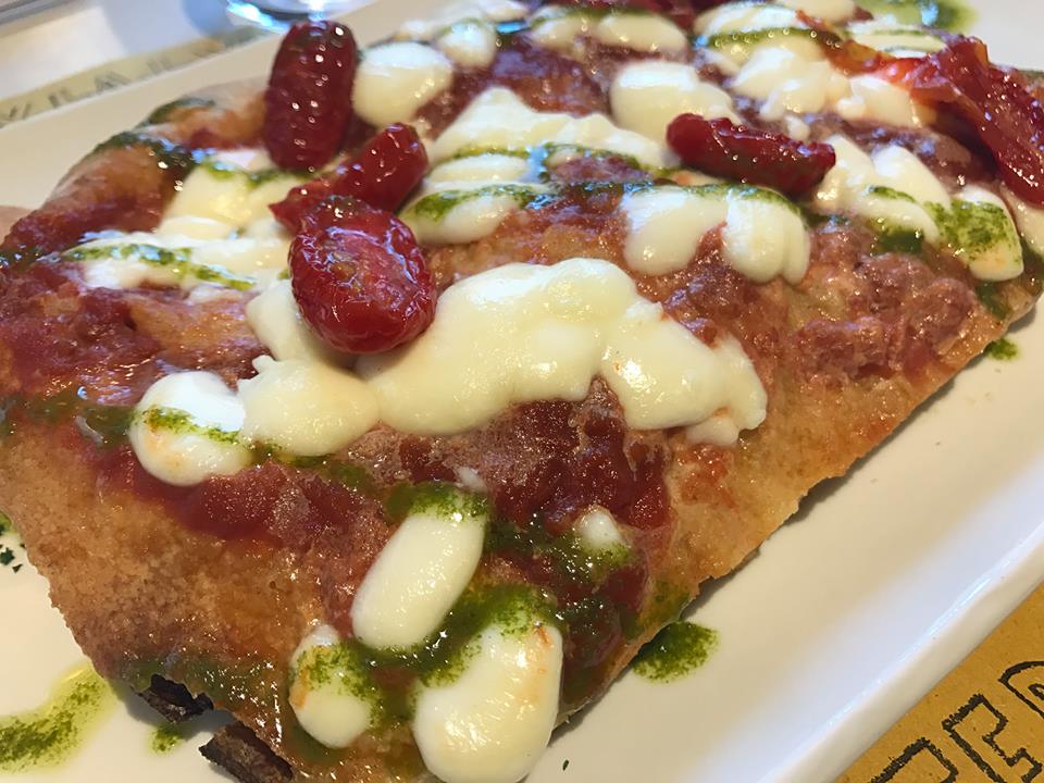 Ci troviamo invece in presenza di buoni impasti che comprendono diversi tipi di farine, compresa quella di farro, che regalano una buona esperienza gustativa anche se a nostro giudizio la spinta verso l’integrale si sposa bene soprattutto con topping molto solidi, strutturati e sopratutto acidi, capaci insomma di far mangiare tutta la pizza senza stancare e affaticare il palato.