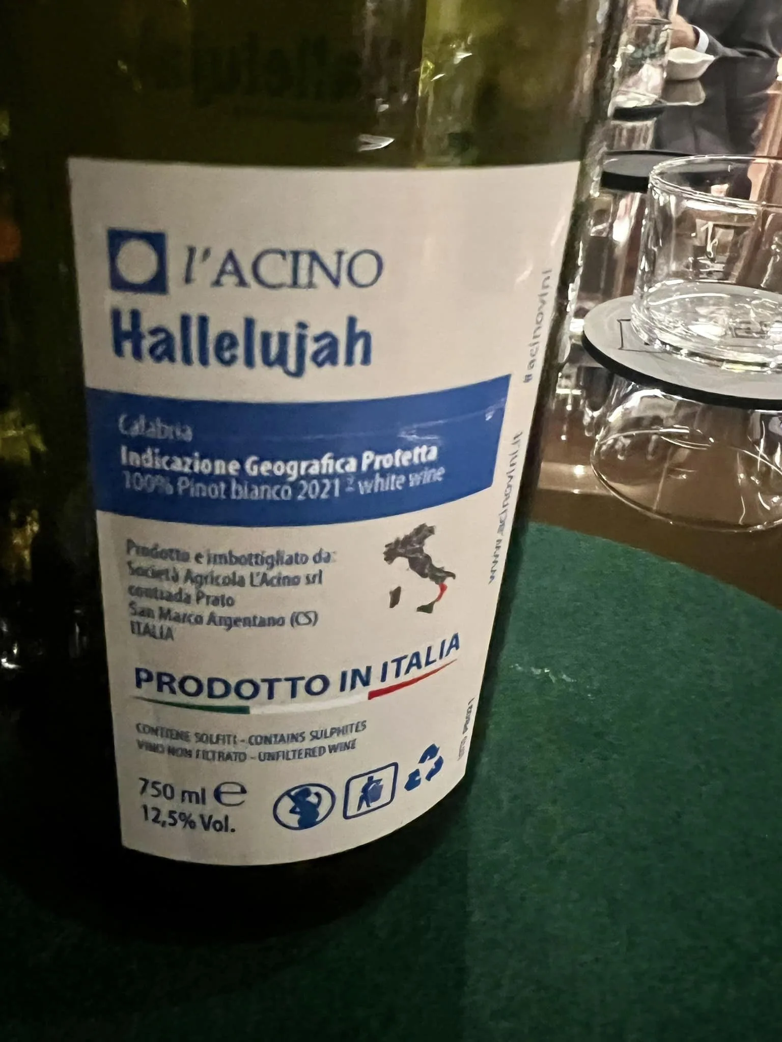 Hallelujah,il PInot Bianco calabrese dell’Acino