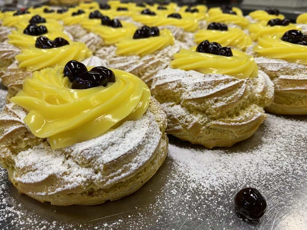Ad ogni buon conto, in ogni guantiera che si rispetti non può mancare il soffice babà, la fragrante sfogliatella nella versione riccia e frolla, la barocca cassatina, la goduriosa testa di moro, una sfera di pan di Spagna ricoperta da codetta di cioccolato, il cannolo siciliano, la zeppola bignè, la zuppetta ingentilita dallo zucchero a velo, la deliziosa, un biscotto di fragrante pastafrolla ripieno di crema al burro e rifinita con la granella di nocciole che al pari della sfogliatella ed il babà è uno dei più classici dolci della pasticceria napoletana.