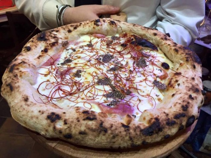 In una serata d’eccezione, a La Spelunca di Santa Maria Capua Vetere, è nata la “SustaStasio”: una nuova pizza ideata e realizzata dal padrone di casa, Antonio De Stasio insieme al pizzaiolo resident, Gabriele Ronchi e ai fratelli Salvatore e Roberto Susta, titolari della pizzeria “La vera pizza Fiocco” a Volla (Napoli) e maestri pizzaioli del corso diventa pizzaiolo della scuola Dolce e Salato di Maddaloni. Sul disco di pasta: fior di latte misto bufala, pancetta di suino razza casertana, colata di caciocavallo al tartufo “impiccato”, scaglie di tartufo nero del Matese e fili di peperoncino.