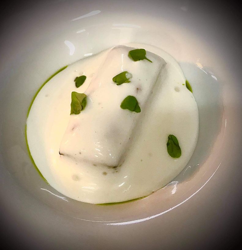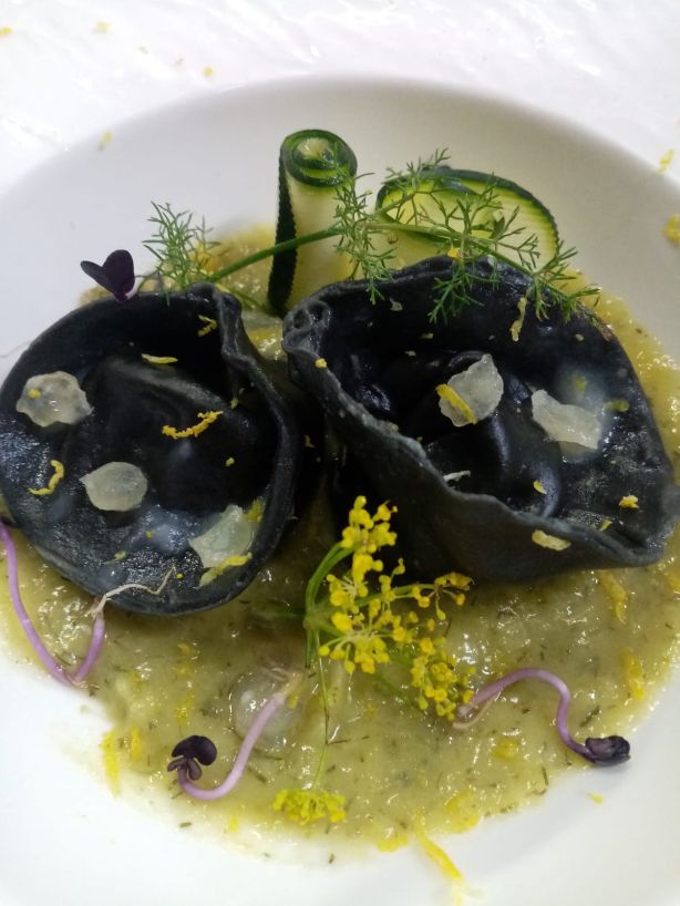 Last but not least, “La Calandra” nella meridionalissima Lampedusa, dove l’uso dei prodotti locali è quasi obbligato e dove, nella cucina di questo accogliente ristorantino, si esprime lo chef Michele Milazzo che, con capacità, rigore e passione per quello che fa, ha proposto Eclissi di luna: Raviolo al nero di seppia, patelle del Mediterraneo e patate, crema di zucchine e finocchietto selvatico, uova di Seppia e zeste di limone.
