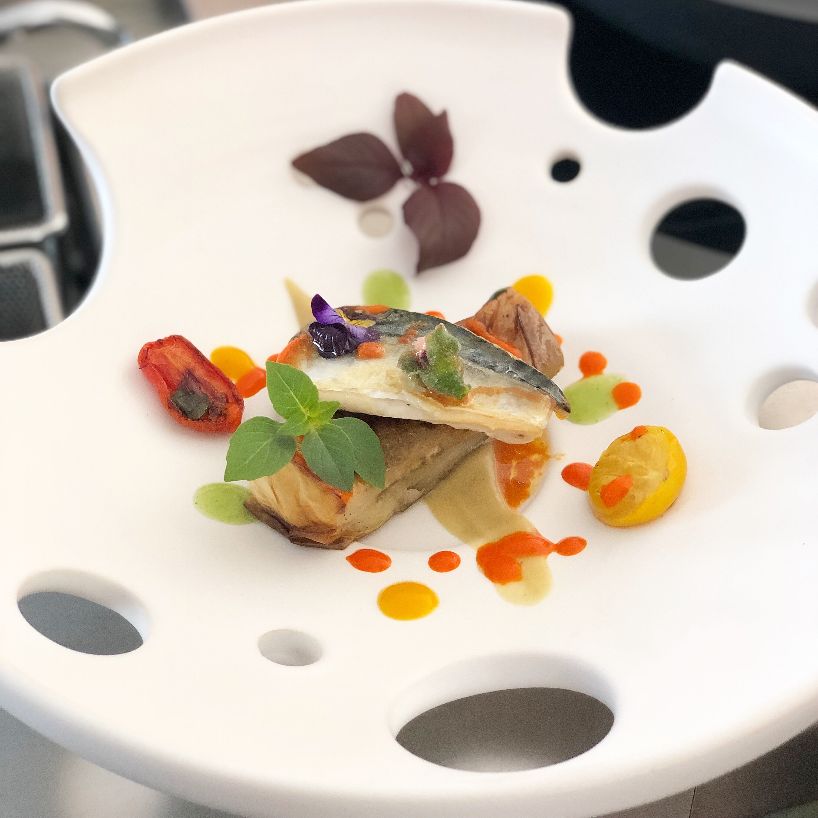 La Capinera a Taormina dove, da sempre, lo chef Pietro D’Agostino fa dei prodotti del territorio dei piccoli grandi capolavori di arte e gusto come “O sgombro mio”: Sgombro del Mediterraneo, melanzana, passata di ceci, peperoni, pomodorini di Pachino, il piatto dedicato alla rassegna.