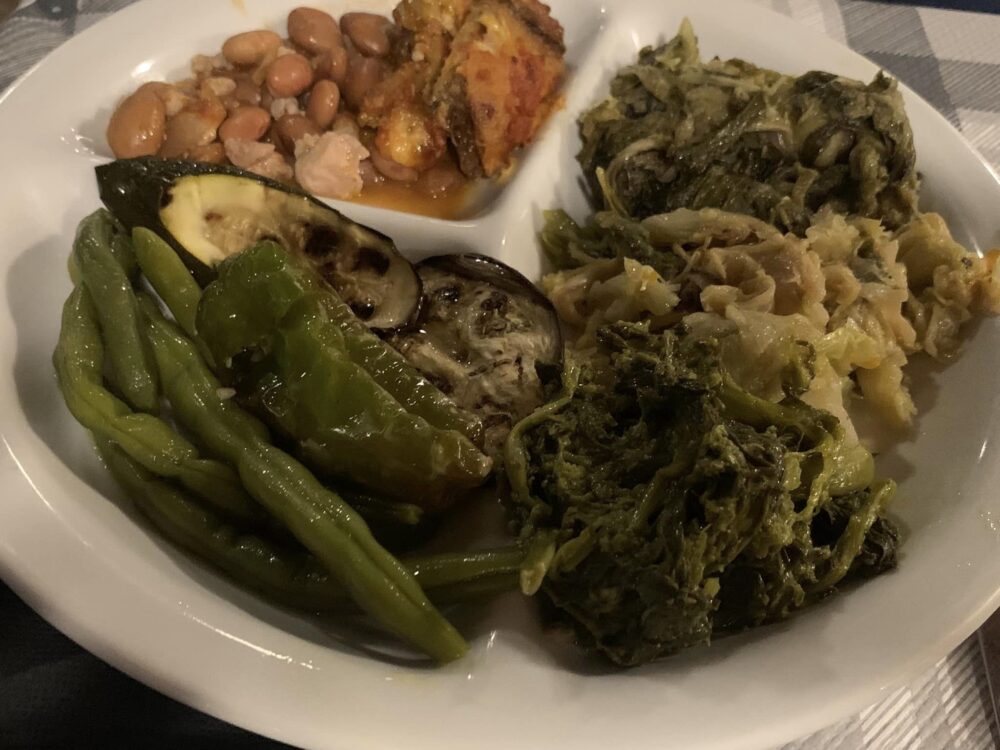 I numeri sono alti ma niente paura, la gestione familiare è collaudata anche quando sta sotto stress, in pochi minuti vi chiedono la comanda e arriva un piccolo benvenuto. Potrete scegliere tra i primi tipici del territorio con pasta fresca incrociata ad alcuni sughi base in base ai gusti, ragù di castrato, salsa fresca, eccetera. Anche gli antipasdti sono ben organizzati e noi vi consigiamo quello di verdure che da sempre costituiscono la base della cucina rurale del Sud: grandiosa parmigiana di melanzane, zuppa di fagioli, fagiolini all’insalata e scarola.