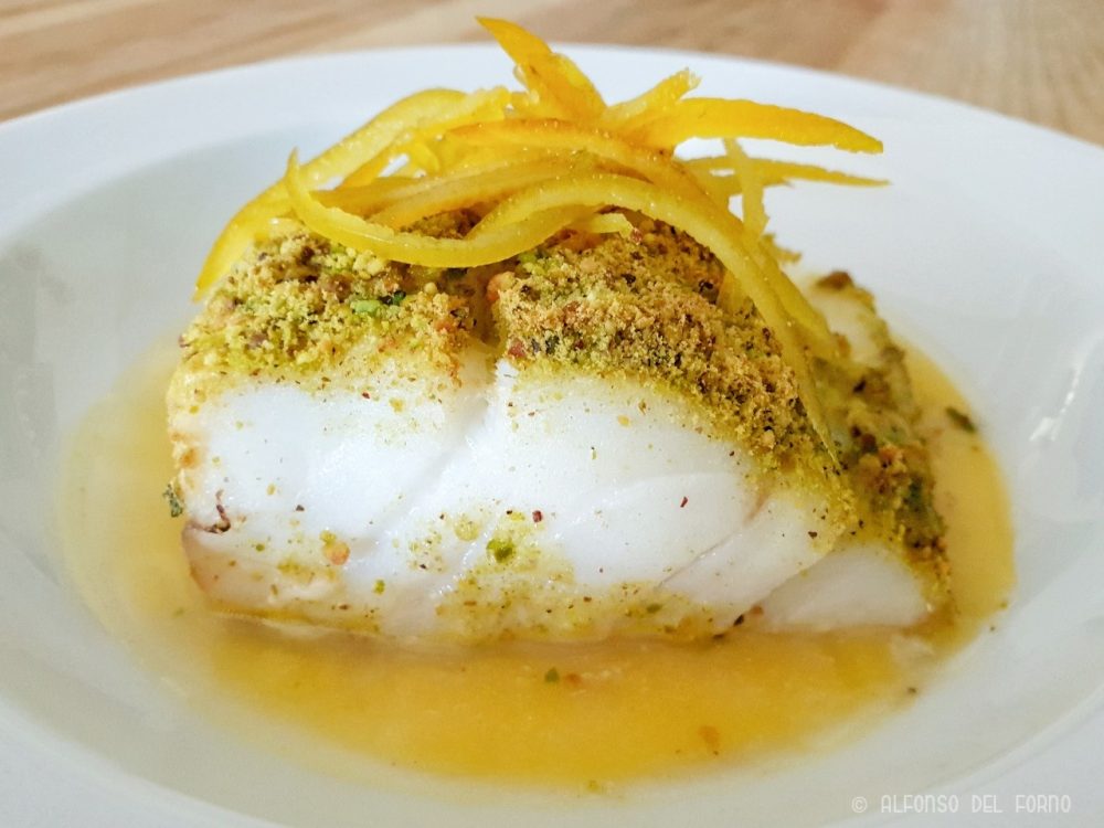 Questa è una delle ricette originali de La Lanterna. Il baccalà, cotto al vapore, è cosparso di polvere di pistacchio e arancia, adagiato su un sughetto realizzato con burro, agrumi e farina di riso. A completare il tutto, scorzette di limone e arancia. Questo piatto è molto fresco, con le note degli agrumi che accompagnano la sapidità del pesce. In abbinamento trovo perfetta una Saison con note speziate e agrumate, dal sorso dinamico e una decisa secchezza finale.