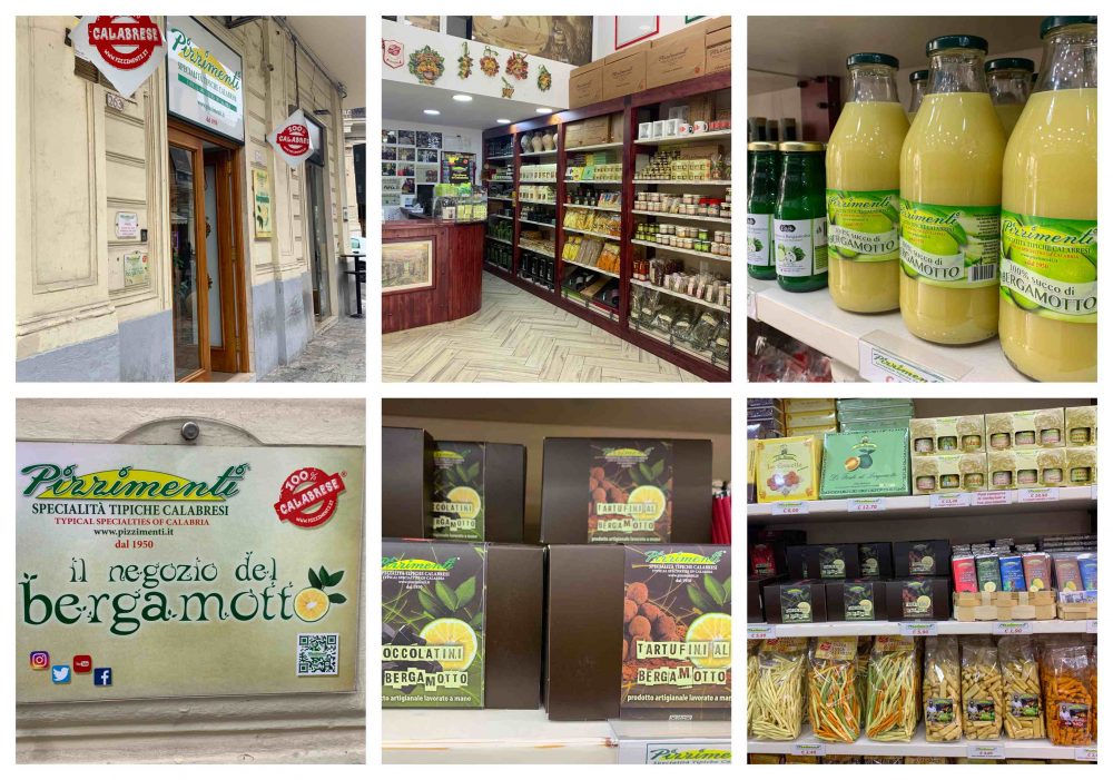 E certamente verrà voglia, dopo essere usciti dal museo, di fare incetta di prodotti tipici a base di bergamotto. Ed ecco che a poche decine di metri di distanza, sul Corso Garibaldi, principale arteria cittadina, si trova il punto vendita dell’azienda Pizzimenti, riferimento in città per chi desidera acquistare il meglio delle tipicità calabresi, prime su tutte quelle a base di bergamotto: succhi, marmellate, miele, liquori, biscotti, cioccolata e pasta aromatizzata al bergamotto e, quando è periodo, anche il frutto fresco.