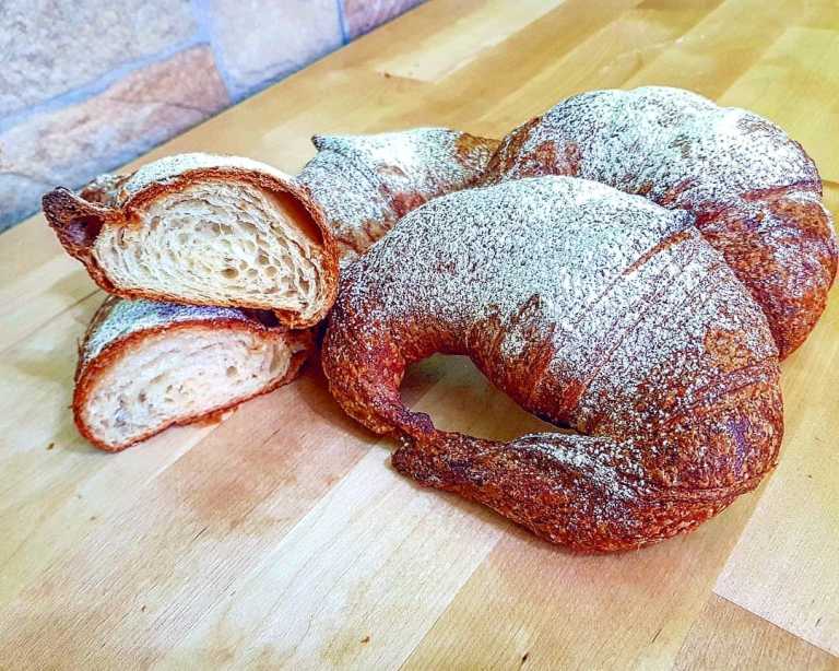 Nel suo laboratorio, dove studia, sperimenta e produce con la collaborazione della compagna Flora Lambiase, è una fucina di nuove attività. Tra queste prima di tutto l’inserimento in produzione del panettone nella versione classica con scorze di arance italiane candite e uva passa, quello farcito soltanto con uvetta e il panettone al cioccolato con un caratteristico impasto scuro e l’aggiunta di un cioccolato monorigine della Callebaut.