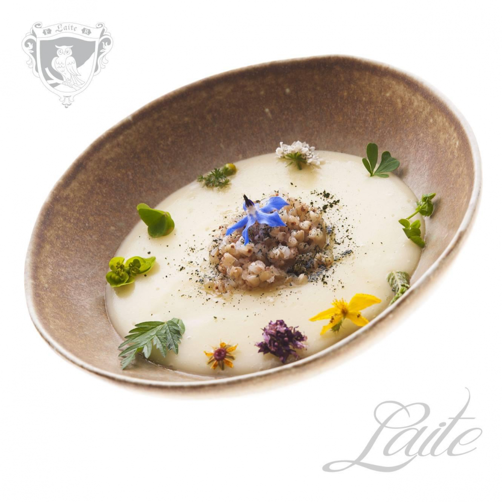 Vellutata di patate, grano saraceno, erbe, colatura – ph Ristorante Laite