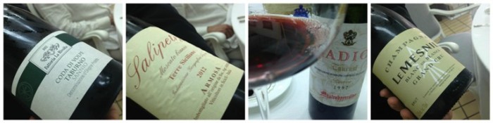Il Mosaico, i vini: Coda di Volpe 2012 di Paolo Cotroneo, Le Mesnil, Moscato secco Armosa Saliperty e Radici 1997