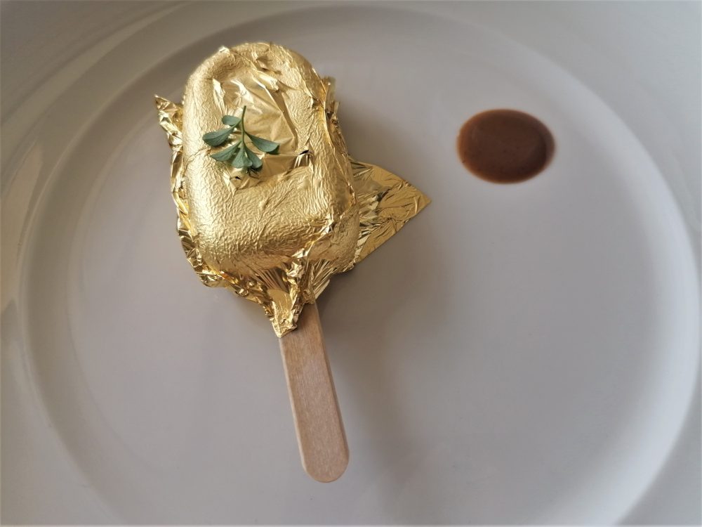 Così come “Pane? Il giorno dopo”: in sostanza una panzanella rivisitata con verdure fermentate, ripieno di fagioli e una punta di wasabi, accompagnata da un gelato al cavolfiore e lamponi.